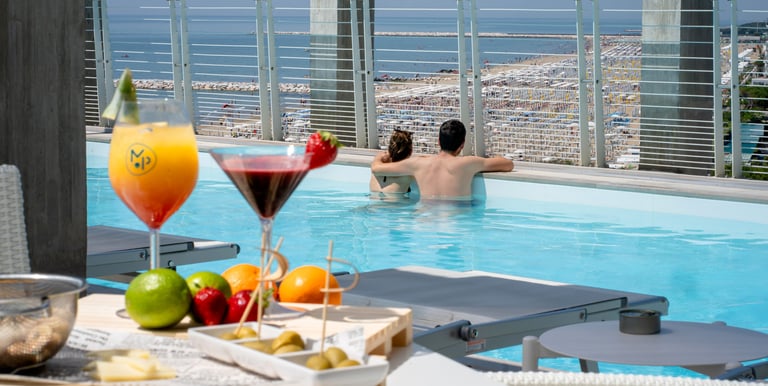 L’emozione di un aperitivo, un light lunch o light dinner a bordo piscina, lasciandosi incantare dalla bellezza del cielo, del mare e del tramonto.